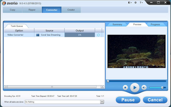 OK. Now leave the rest to DVDFab. More info about DVDFab Video Converter, please go to:http://www.dvdfab.cn/video-converter.htm